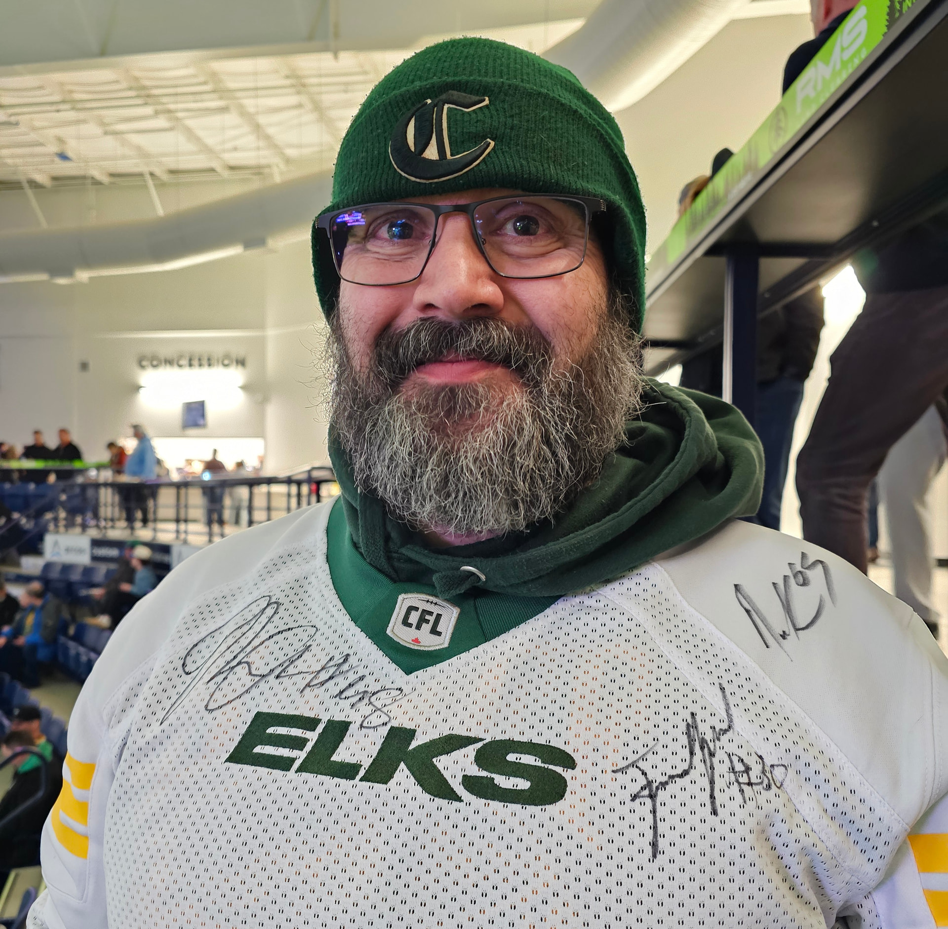 I am gameday staff for the Sherwood Park Crusaders of the BCHL. Couldnât resist going into enemy terrority as the Spruce Grove Saints had a âGreen and Goalsâ cross promo with the Elks tonight.