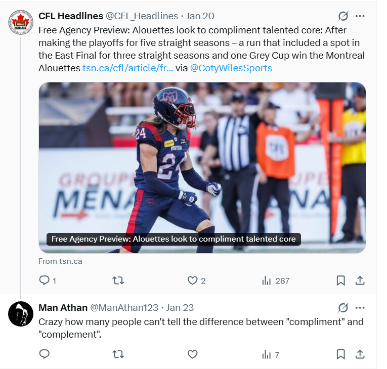 Complement/compliment is trickier because of the overlap between the use cases. That said, it’s a distinction a journalist, who writes for a living, should be able to make.