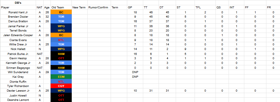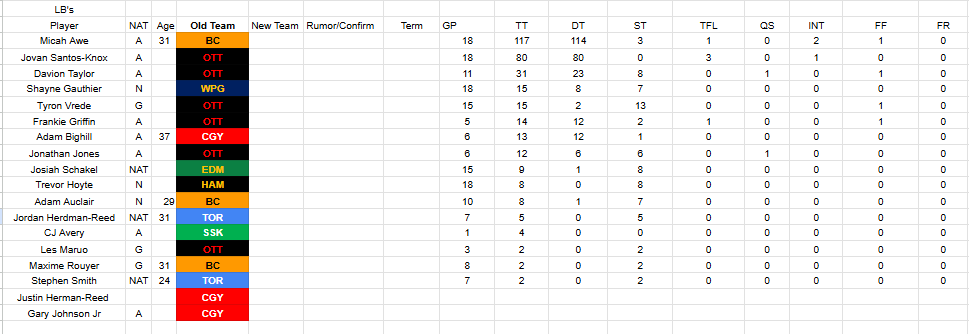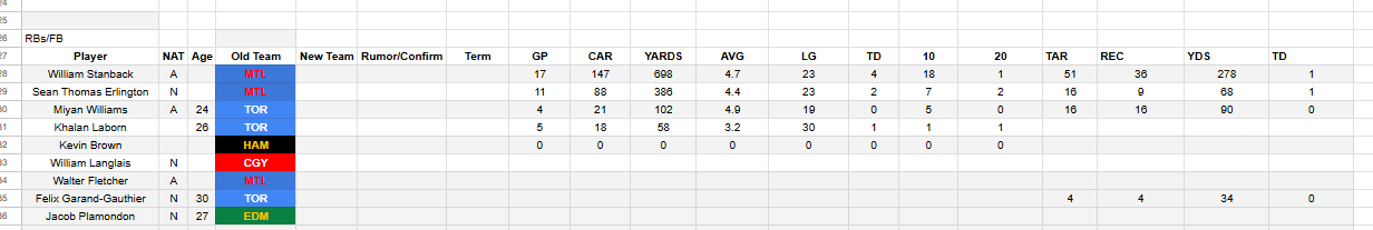 The highest ranked back in the top 20 for this year’s draft is a fullback from Laval, Boutin ranked at #20. So we can’t really count on that, would be better off signing Garand-Gauthier again for blocking and the occasional screen play if the plan was to make full use of Augustine. Agree with you on STE, my guess is he’ll retire.