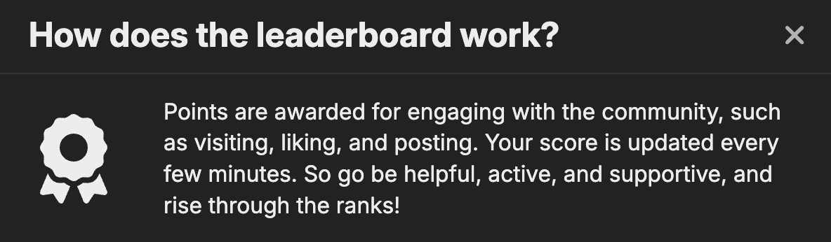 So for fun, i enabled a new leaderboard that is based on cheers scores calculated by our combined activity. you can see the link the sidebar in the “More” section.