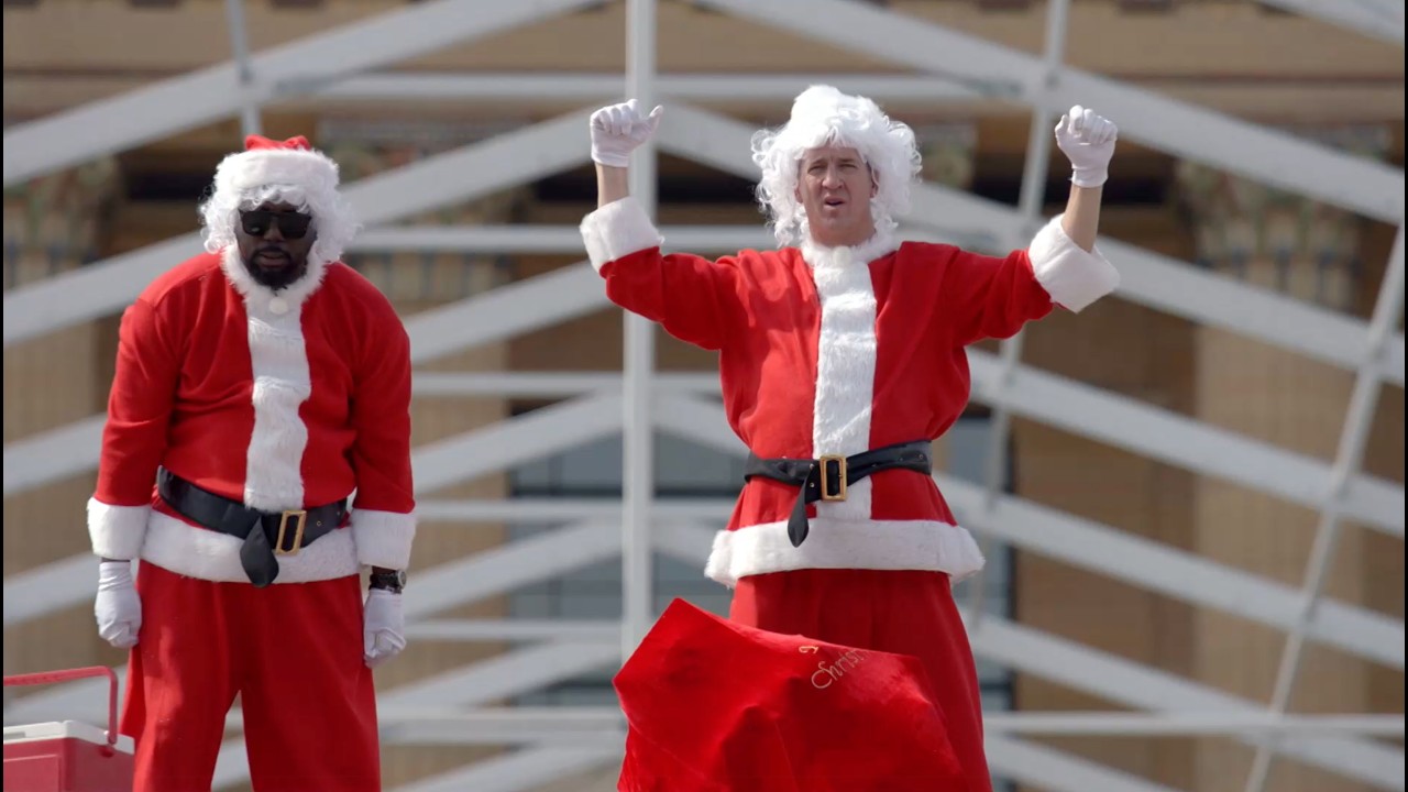 In an ironic historic twist, somehow Peyton Manning as Santa looks rather like George Washington, but splitting hairs never mind, all of this is true story!
