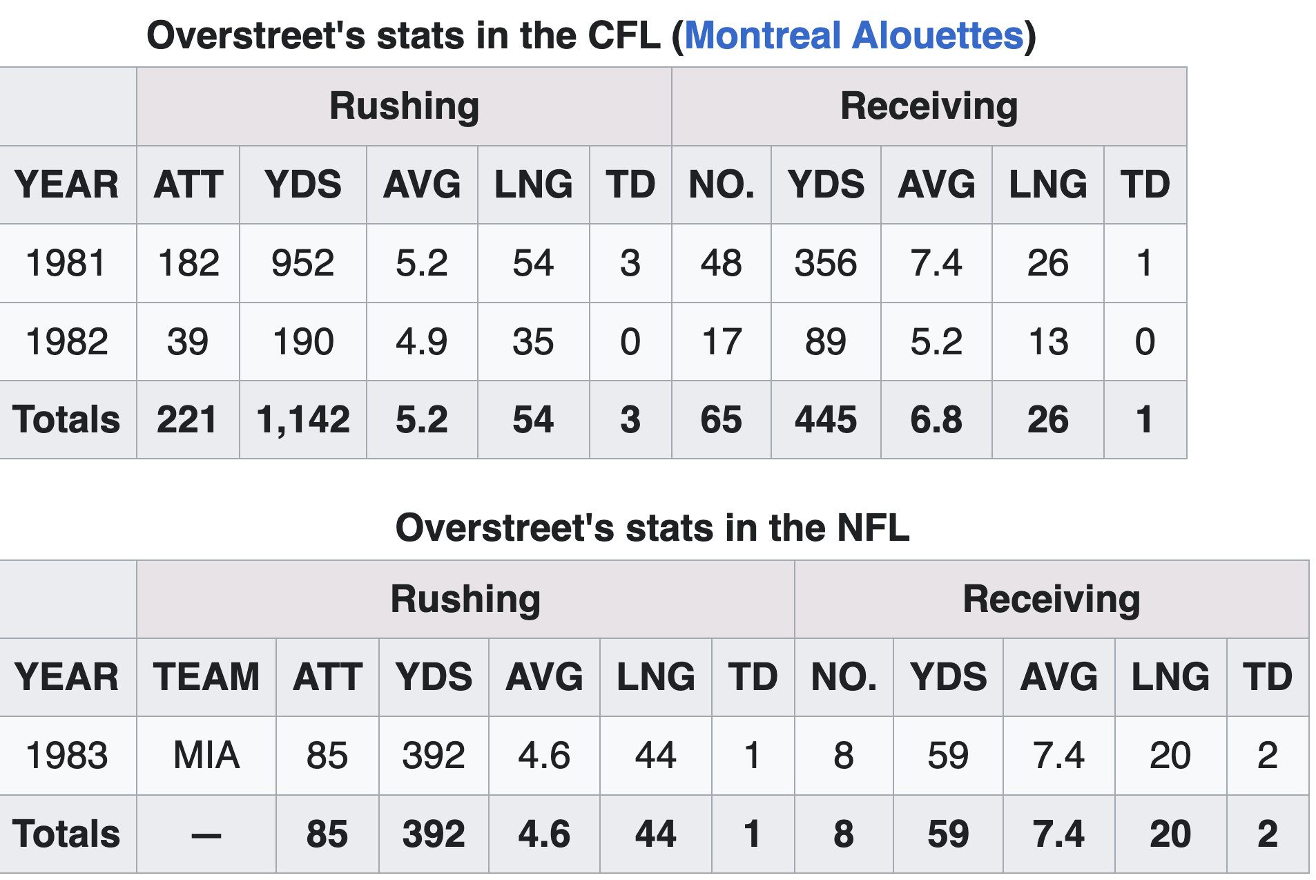 I too recall Cousineau as playing very well … he was a physical beast … Overstreet had a good 1981 season, was injury plagued in his second and had a promising 1983 with Miami … he died in a car accident in the summer of 1984.