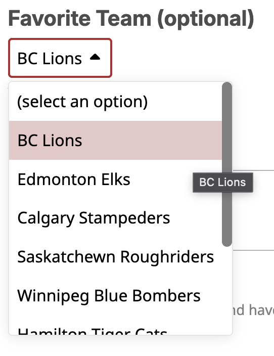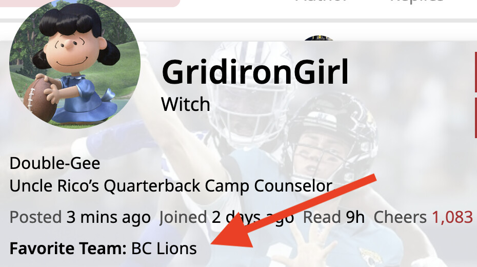 if you didn’t do it when you signed up, you can go to https://discourse.cfl.forum/my/preferences/profile to show your favourite team :
