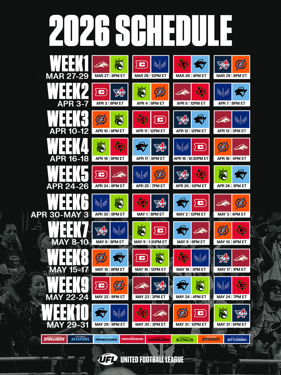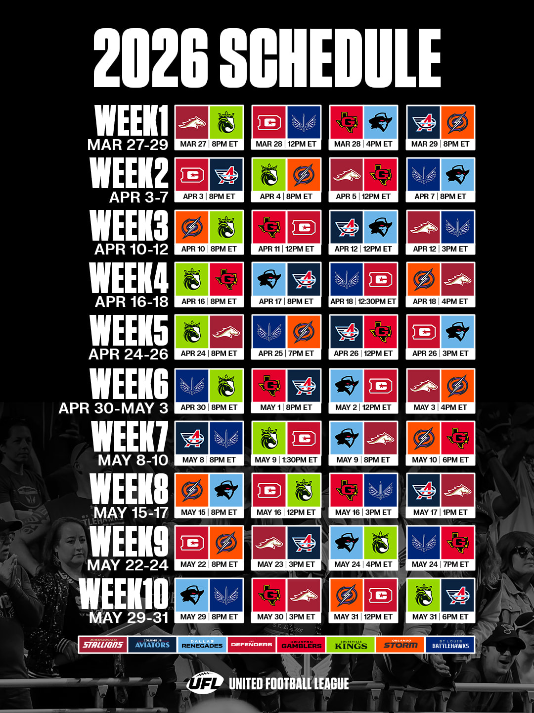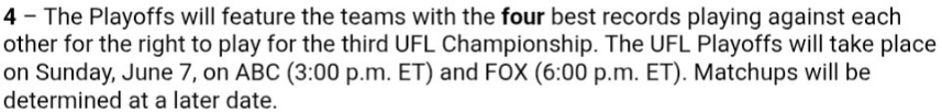 In the article linked above are all the TV listings, which the crappy UFL should just put on its website, but that basic practice would be too fancy for them here in 2026.